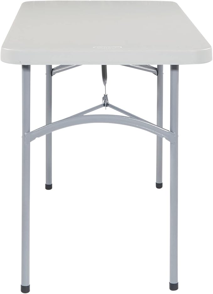 • 4 foot folding table features a heavy-duty blow-mold light grey resin top for durability and easy cleanup