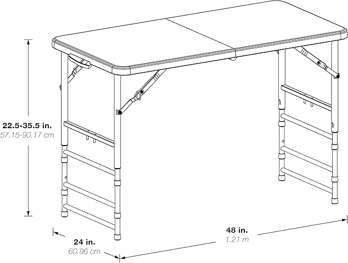 • The 4’ table folds at center and includes a locking latch design along with a handy built-in handle for easy set-up and transportation