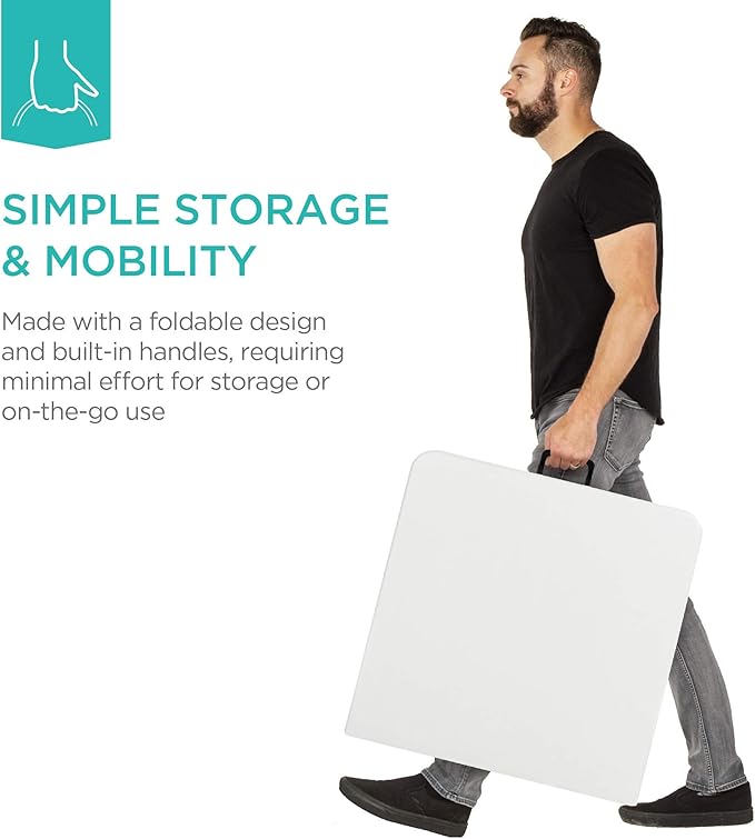Best Choice Products 4ft Plastic Folding Table, Indoor Outdoor Heavy Duty Portable w/Handle, Lock for Picnic, Party, Camping - White
