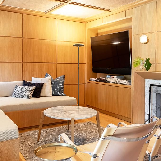 • 3-Way Dimmer and Memory Mode: The contemporary living room decor fits easily in corners and the base slides under sofas. Adjust brightness level with a simple touch of a button featuring three dimmer settings with this LED floor lamp. The rotating head of this tall lamp lets you angle the light for a greater light effect when desired. The standing lamp has a memory function to remember your last brightness setting when you turn the lamp on and works with wall switches.