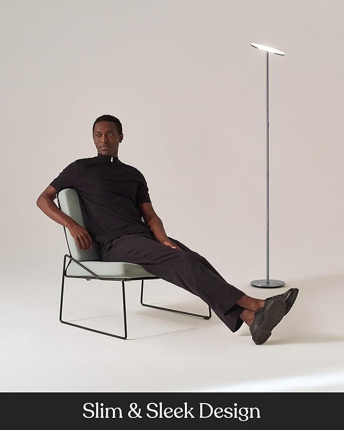 • 3-Way Dimmer and Memory Mode: The contemporary living room decor fits easily in corners and the base slides under sofas. Adjust brightness level with a simple touch of a button featuring three dimmer settings with this LED floor lamp. The rotating head of this tall lamp lets you angle the light for a greater light effect when desired. The standing lamp has a memory function to remember your last brightness setting when you turn the lamp on and works with wall switches.