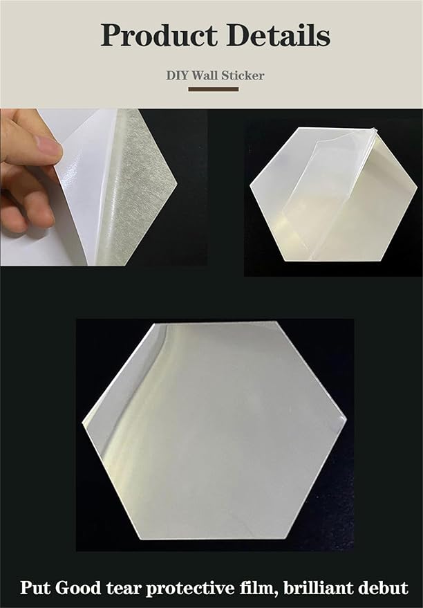 • Kind Reminder - Please note these stickers are not genuine mirrors and cannot be used as substitutes for mirrors. They are designed to produce a mirror effect. Due to the fact that most packaging is rectangular. Pay attention to the safety of the corners when pasting.