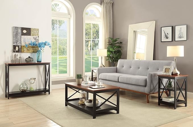 Convenience Concepts Oxford Coffee Table with Shelf, Cherry/Black