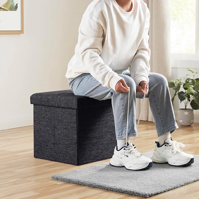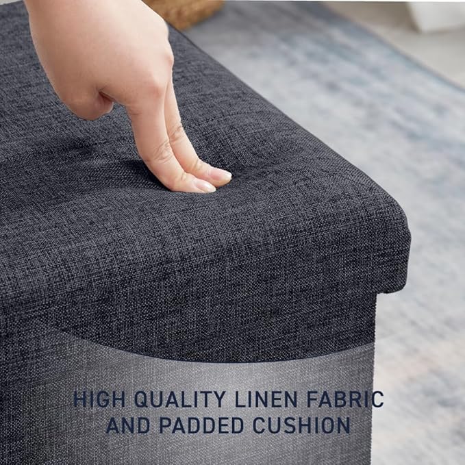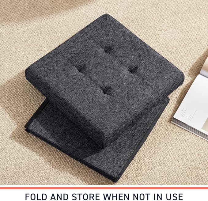 • FOLDABLE: It’s lightweight folding design allows you to store this ottoman away when not in use. The comfortable padded lid come off allowing you to fold the ottoman flat and store in any space.