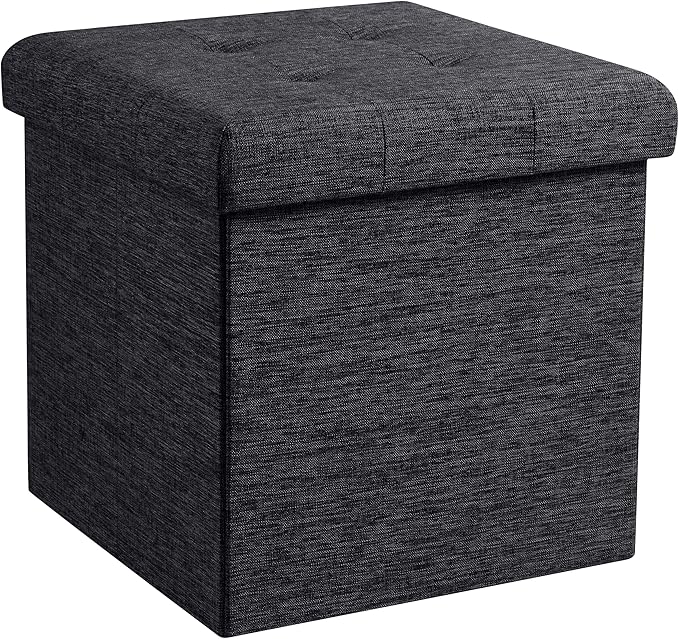 Ornavo Home Foldable Tufted Linen Storage Ottoman Square Cube Foot Rest Stool/Seat - 15" x 15" x 15" (Black)