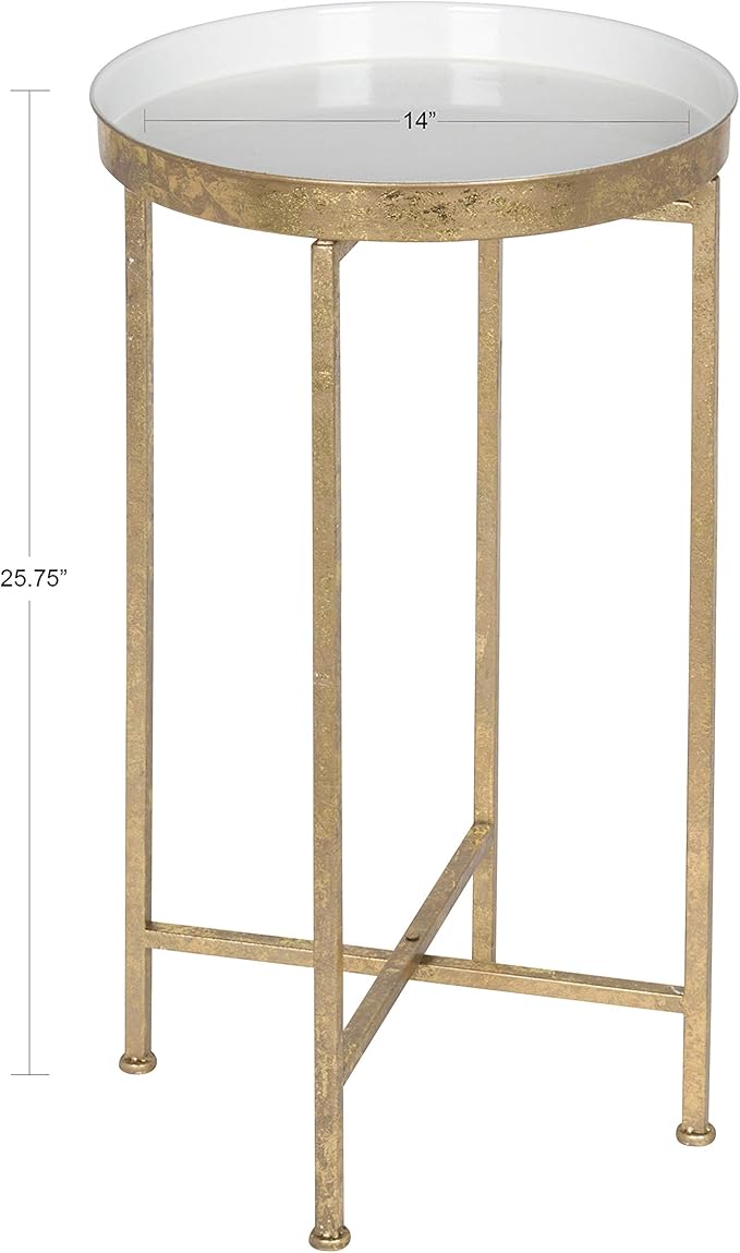 Kate and Laurel Celia Round Metal Foldable Tray Accent Table, White with Gold Base
