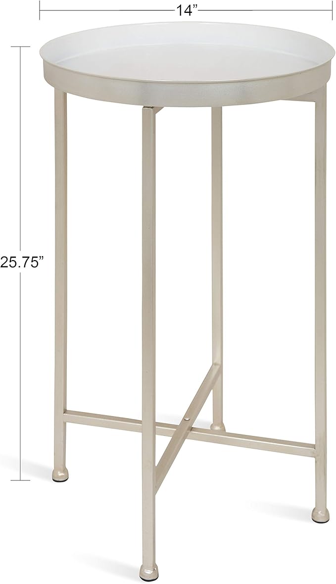 Kate and Laurel Celia Round Metal Foldable Tray Accent Table, White with Silver Base
