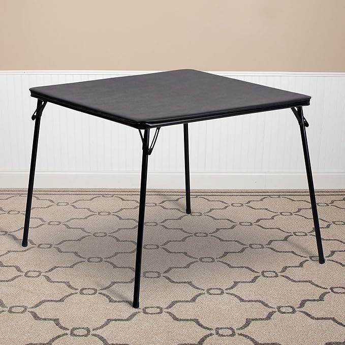 EMMA + OLIVER 33.5" Square Multipurpose Folding Card Table for 4 Players, Portable Square Folding Table with Padded Vinyl Top, Black