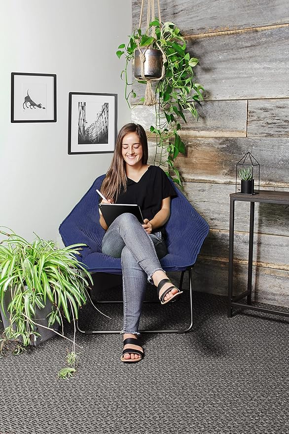 Zenithen Indoor Foldable Portable Plush Hexagon Folding Dish Chair, Perfect for Bedrooms, Dorm Rooms, and Living Rooms, Use for Reading, Studying, Gaming, Navy Blue (Pack of 2)