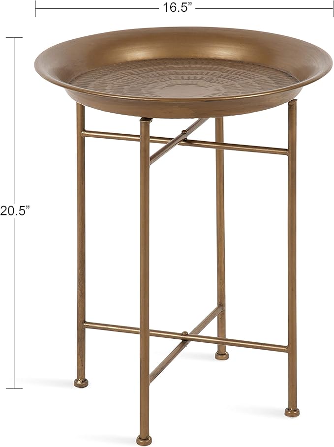 • BOHO CHIC: Use the brushed metallic gold finish to add interest and beauty to your home with the Kate and Laurel Mahdavi End Table. A round tray adorns the top of the metal table and sits at the height of 20.5 inches - an ideal size for most rooms
