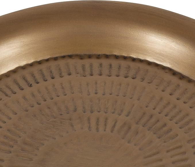 Kate and Laurel Mahdavi Round Hammered Metal Tray End Table, Dark Gold