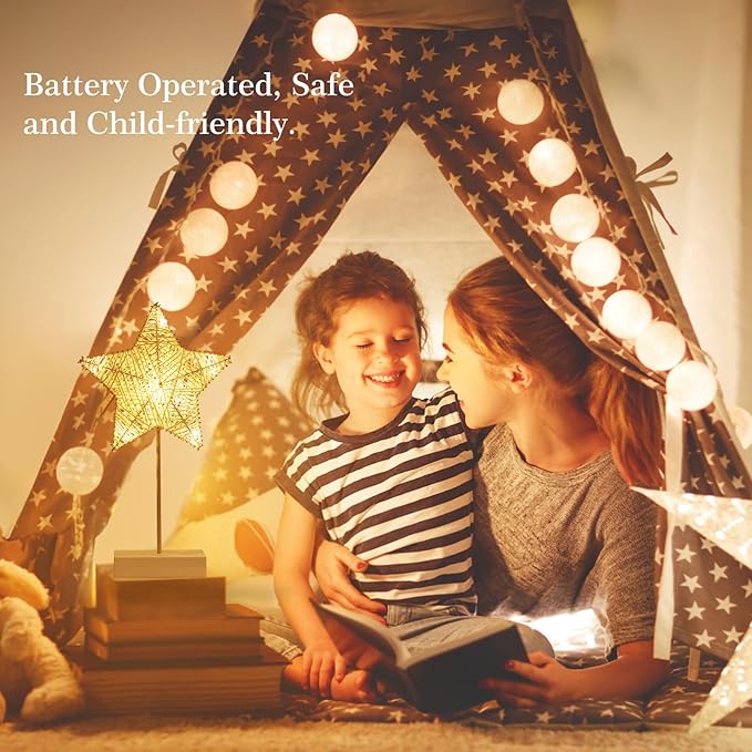 • ⭐ Warm & Gentle Light: 20 little built-in LED beads emit a soft and comfortable warm white light that make such a tiny star lamp to light up the whole room, which can create a cozy atmosphere for you. The light is just right, neither too bright nor too dim, protecting your eyes and brightening your room as well as your mood.