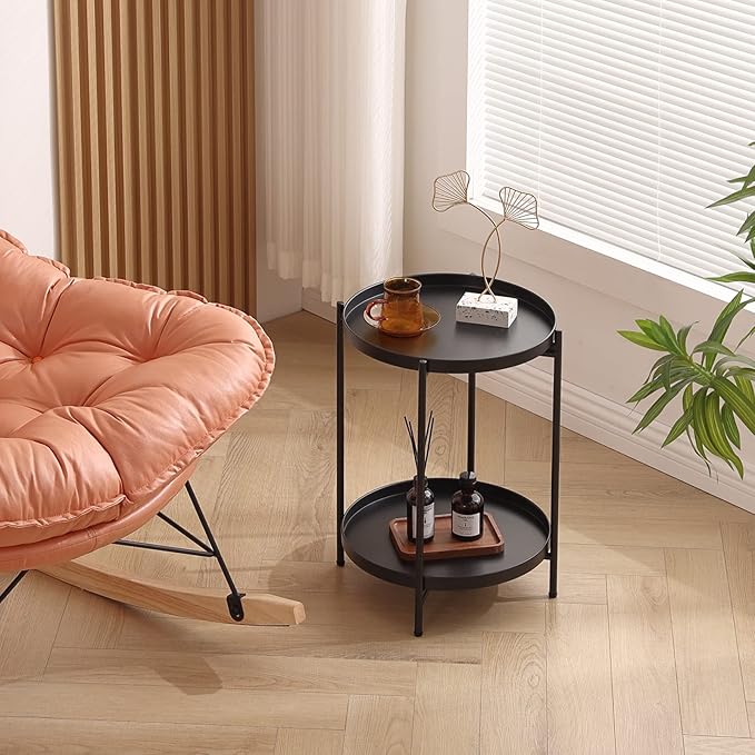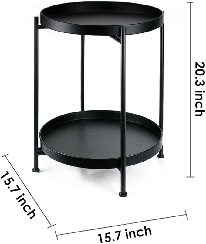 • 【Material】:The 2-tier end table made of metal. The surface is smooth with fine coating. Simple and Space-saving.You can put books, coffees, laptop, photographs, small pot plants on it.(assembled 15.7W''*20.2''H)