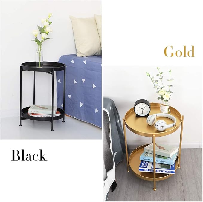 • Material : The 2-tier end table made of metal. The surface is smooth with fine coating. Simple and Space-saving.You can put books, coffees, laptop, photographs, small pot plants on it.(assembled 15.7W''*20.3''H)