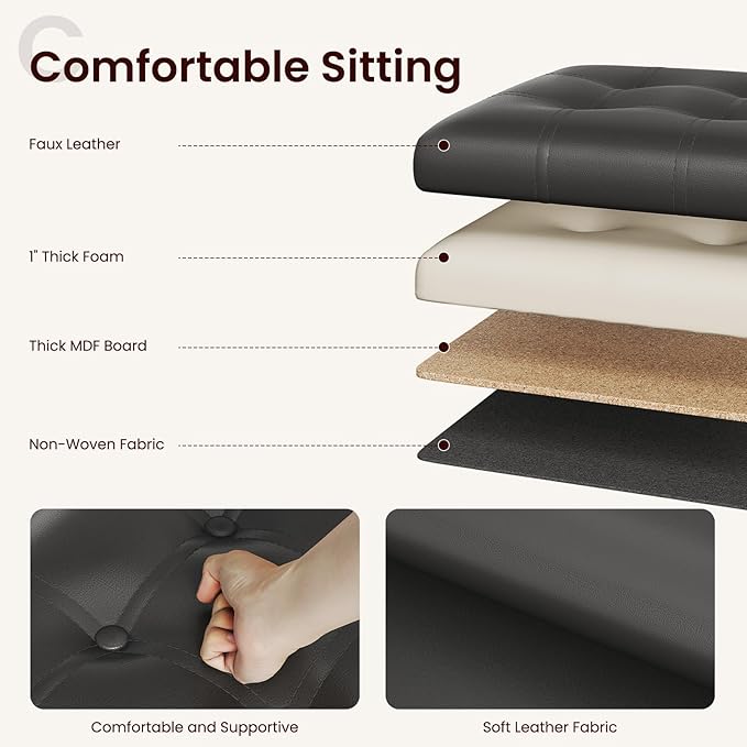 • MATERIALl QUALITY: The storage ottoman frame is made of high-end PU leather and sponge padding to ensure excellent stability, practical and perfect as a footrest