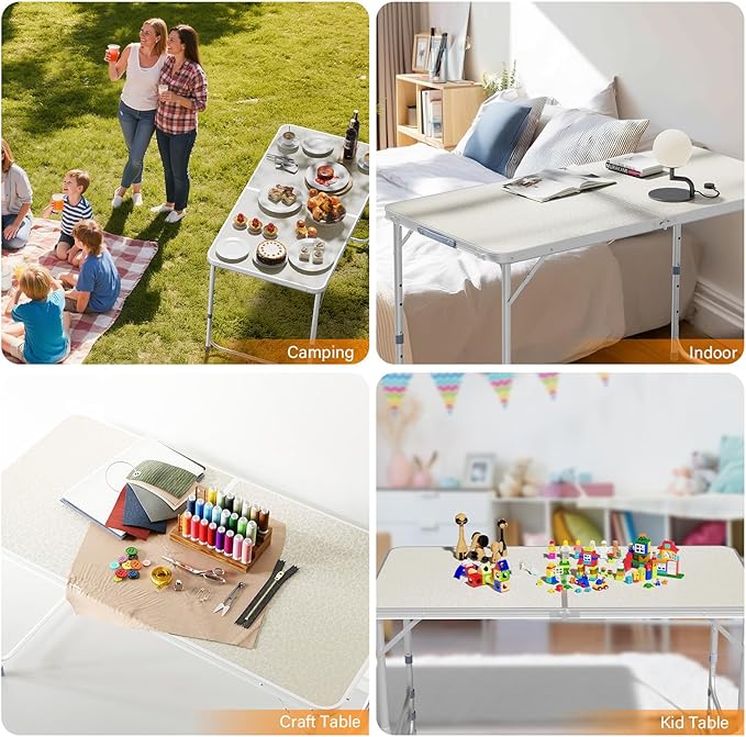 • MULTIPURPOSE TABLE: The foldable table is universal . Perfect for outdoor and indoor activities, camping, picnic, hiking, fishing, Dining, BBQ, party, travel, gathering, concert, sports, event.