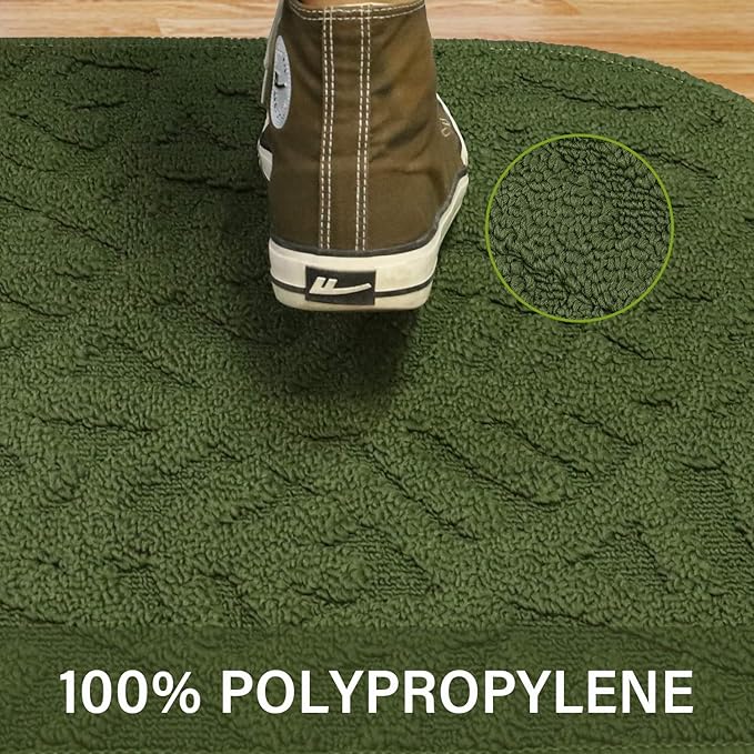 TOONOW Indoor Doormat Front Door Mat,30"x18", Low-Profile Machine Washable Kitchen Rug, Absorbent Mud Half Round Entrance Mat for Outdoors, Entryway, Patio, Bedroom, Olive Green