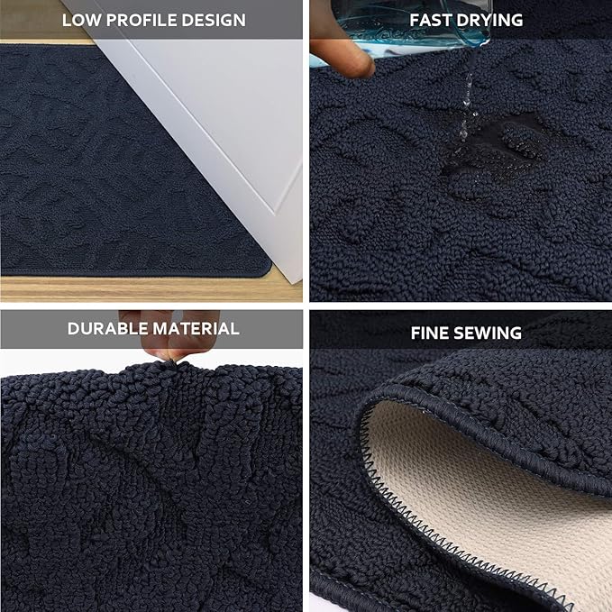 • 0.31 LOW PROFILE DESIGN: The door mat indoor entrance carpet is only 0.31 slim inches thick, the thin design is perfect for the entrance way. This proper thickness facilitates us to let the door swing over them without the mat getting stuck. You can place the doormat on your front door, back door, entryway, indoor entrance, patio, garage, kitchen, laundry room, in front of the sink, hallway, cat food bowl, home décor, or any high-traffic area.