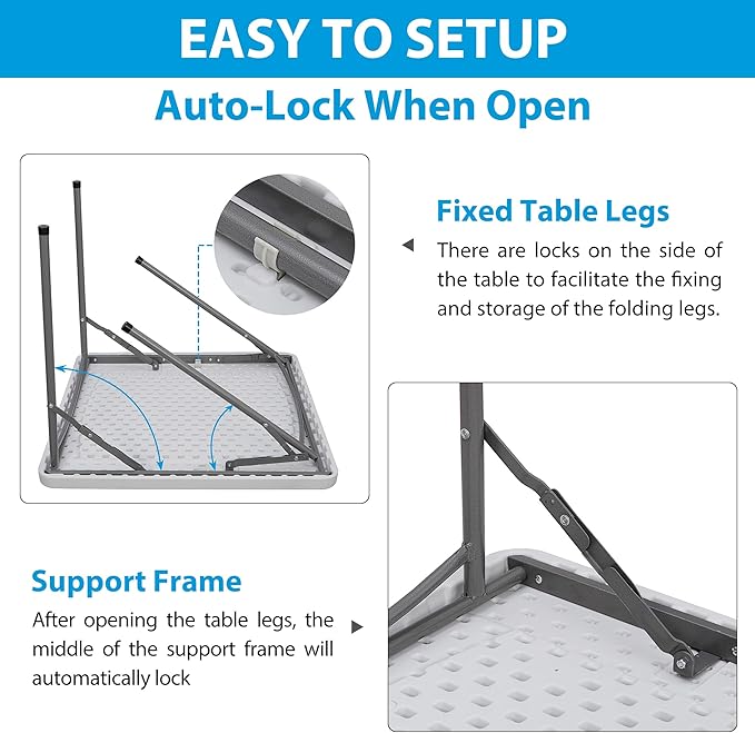 • 【Indoor and Outdoor Use】-- Can be used as a card table, Crafting table, picnic table, dining table, barbecue side table, children's learning table, adult work table, beach camping table, bed / sofa laptop table, for parties, family reunion gathering , trade shows, business meetings, reception areas, training rooms and banquet places