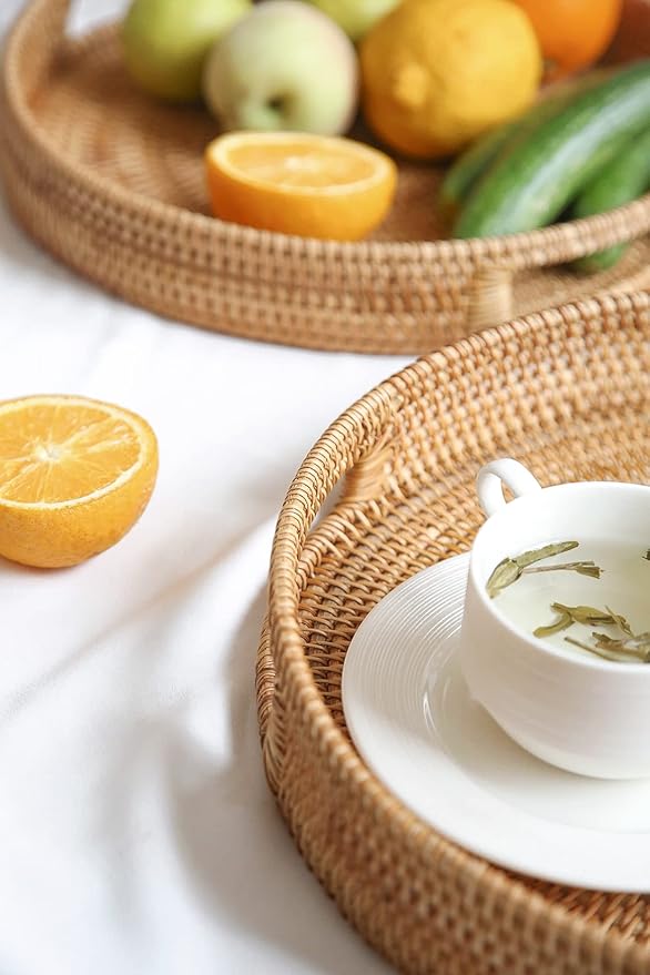 • 【MATERIAL】Crafted from 100% rattan, hand-woven, this durable and eco-friendly tray is a beautiful way to incorporate nature into your decor.