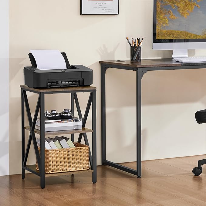 Yaheetech Industrial End Tables, 3-Tier Side Tables with Storage Shelves for Living Room, X Design Sofa Tables, Strong Metal Frame, Easy Assembly, Rustic Brown
