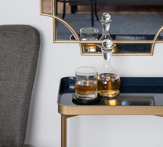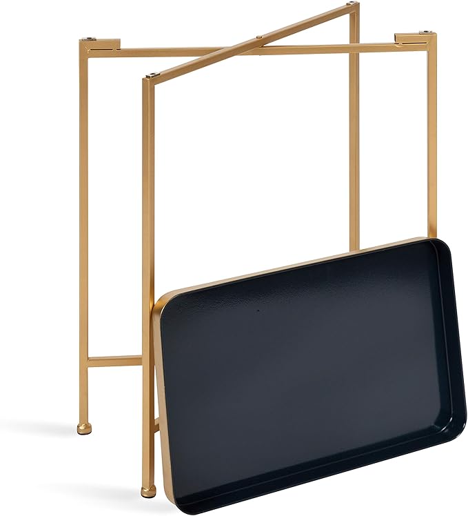 Kate and Laurel Celia Modern Tray Side Table, 18 x 12 x 26, Navy Blue and Gold, Foldable Rectangular End Table for Storage and Display