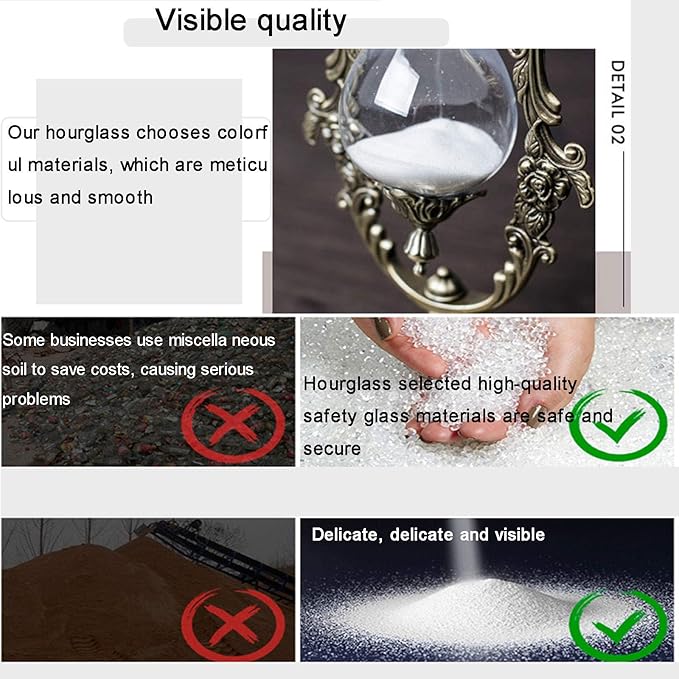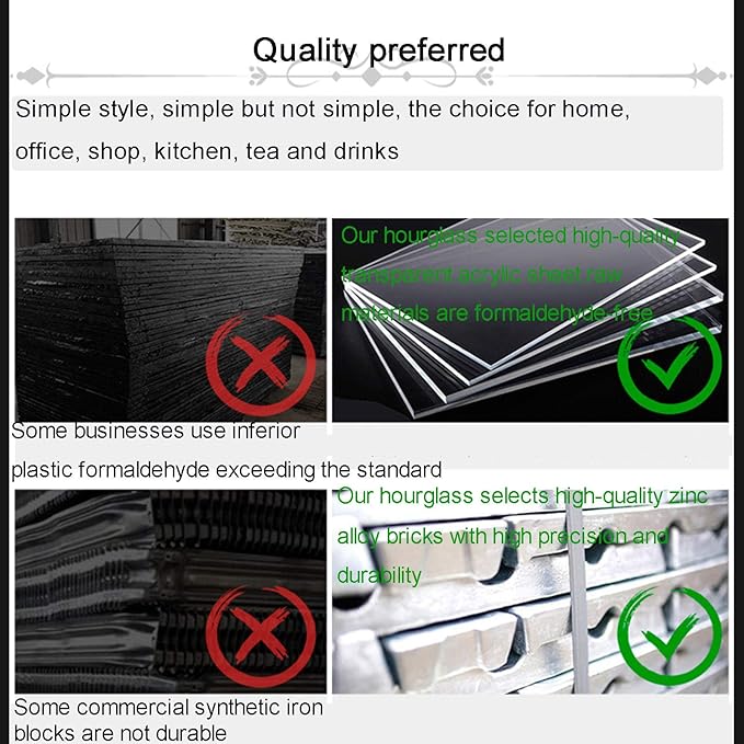 • [Excellent quality] The hourglass timer is made of high-quality metal + acrylic plexiglass, with classic embossed craftsmanship, the texture is natural and lifelike, retro and advanced, the classic hourglass timer will bring an elegant feeling to your office and home, it will definitely be Let your guests be amazed.