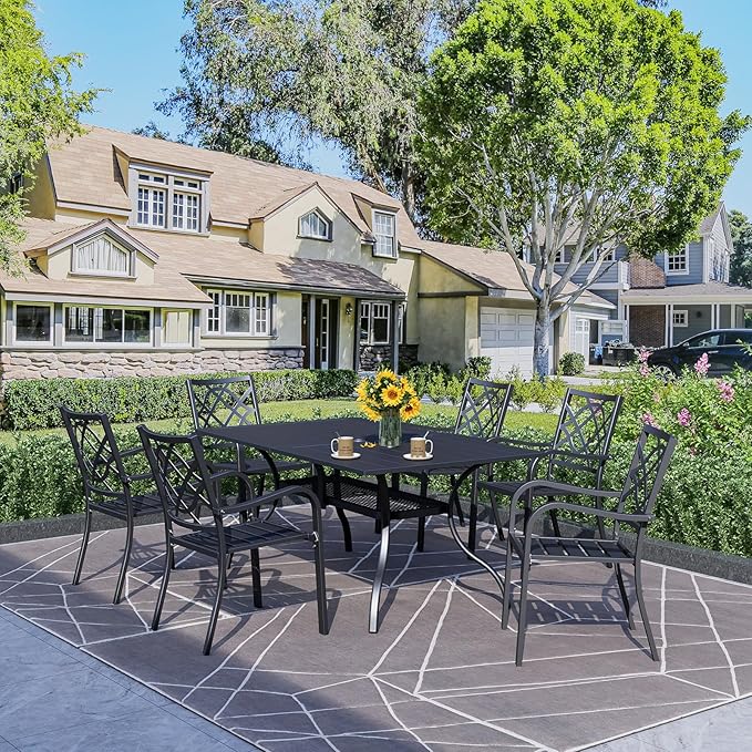 Oakcloud 60"x37" Patio Dining Table, Outdoor Metal Rectangular Table Patio Furniture Classic Black Table with 1.57" Umbrella Hole, for Garden Backyard Poolside Deck