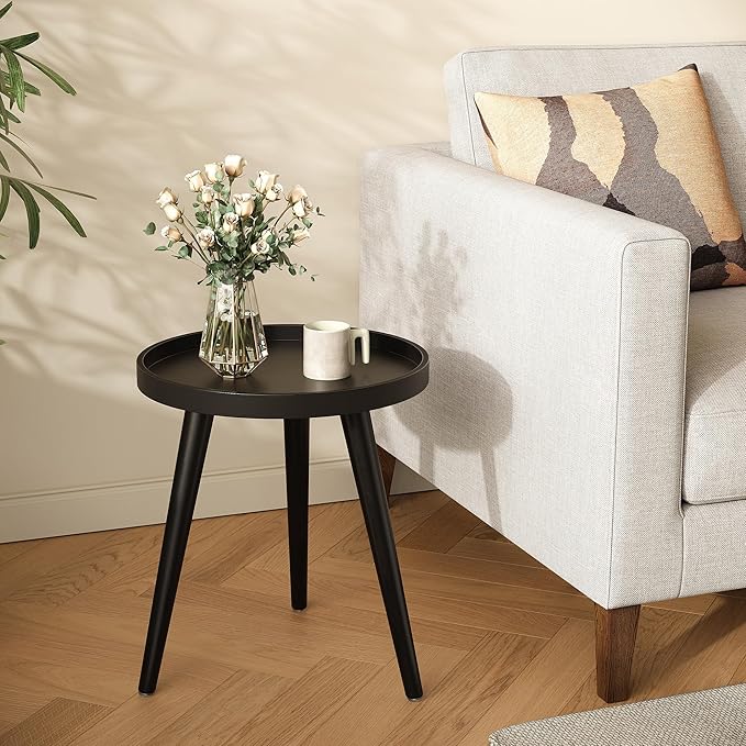 Apicizon Black Round Side Table, Tray Nightstand Sofa Coffee End Table for Living Room, Bedroom, Small Spaces, Easy Assembly Bedside Table, 15 x 18 Inches, Black