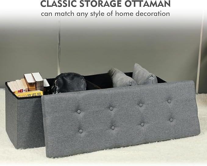 • 🌟EXTRA STORAGE OTTOMAN: Ideal for storing and organizing, blanket, books and daily accessories, etc. It is great for your living room, give you a clean world. When set up, the foldable storage ottoman measures 43.3”L x 15”W x 15”H Max weight capacity is 550LBS