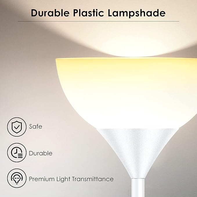 • Eco-friendly E26 Floor Lamp; The 71" floor lamp adopt double E26 base, it will reduce the electricity bills to use the LED light bulb, saving energy and saving your money; Also, the acrylic plastic lampbase can keep a cool touch even after hours of use, so no worries about the overheating issue; Note: Bulbs Not Included