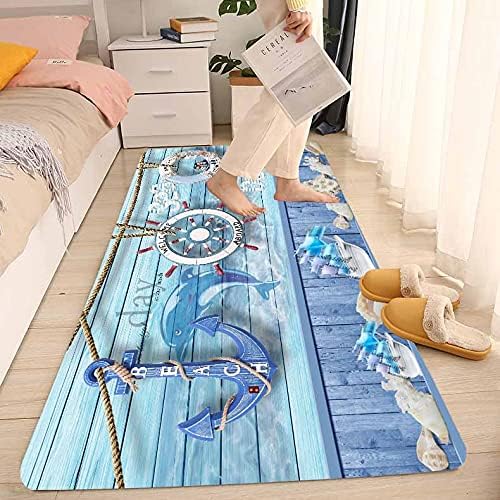 Bath Rugs Sponge Foam Absorbent Soft for Bathroom and Kitchen (71 x 24 inches), Flannel Mat Non Slip Bright 3D Print for Bedside and Living Room(Nautical Anchor Helmsman)