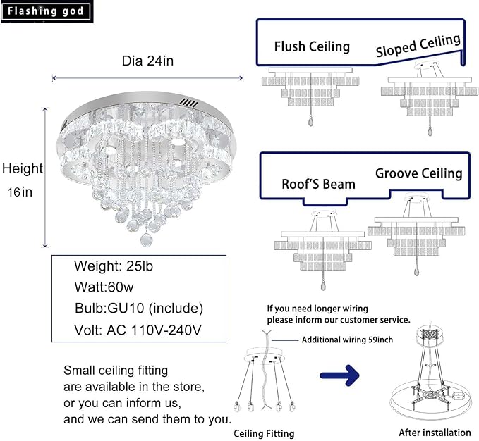 • 【Modern Led Crystal Ceiling Lights Size】 Specification: L24" x W24" x H16".
