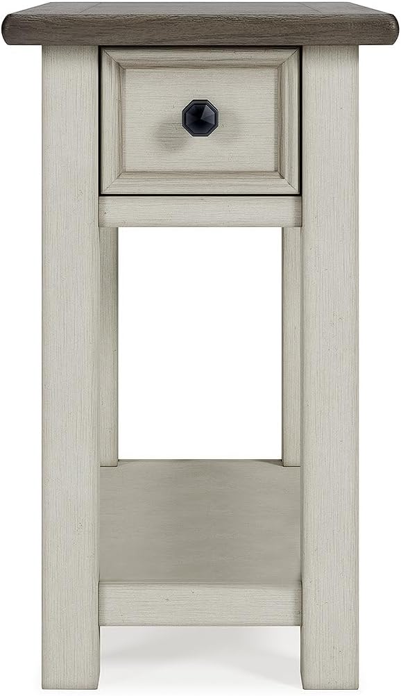 Signature Design by Ashley Bolanburg | Farmhouse Chair-Side End Table – USB Charging Ports, Drawer, Two-Tone Light Brown & Whitewash