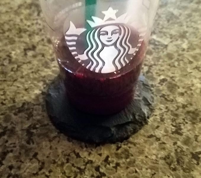 • The slate coasters are all unique due to them being a stone material, so they have different variation in the surface, sometimes this can cause a color variation in the etching.