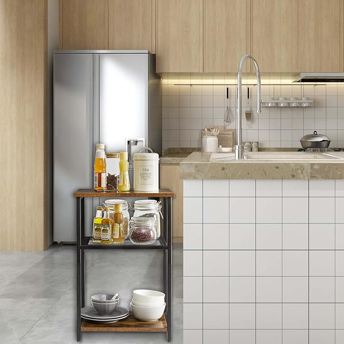 IBUYKE Side Table,3-Tier End Table, Industrial Nightstand Small Table with Storage Shelf, for Bedroom, Living Room, Hallway, with Metal Frame,Rustic Brown UTMJ403H