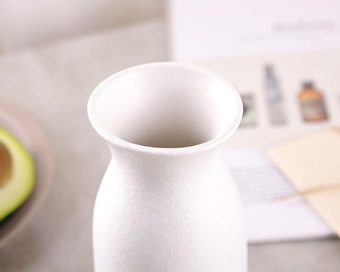 WHJY 6 inch White Nordic Minimalist Matte Handmade Ceramic Vases, Japanese Zen Stoneware Flowerware, Floral Decorations, for Living Room, Study, Bedroom, Balcony, Bar - Short White