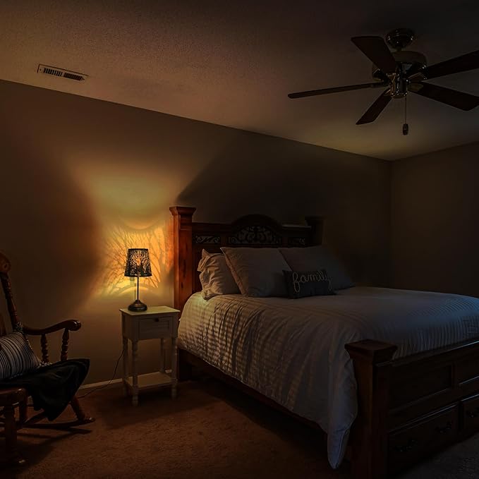 • 【Black Forest Lamps】: This mini table lamp is all about atmosphere! It Casts a wonderful shadow on the wall, When you leave it on at night it lights up all the walls in the room with the image of trees.