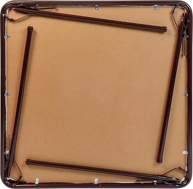 EMMA + OLIVER 33.5" Square Multipurpose Folding Card Table for 4 Players, Portable Square Folding Table with Padded Vinyl Top, Brown