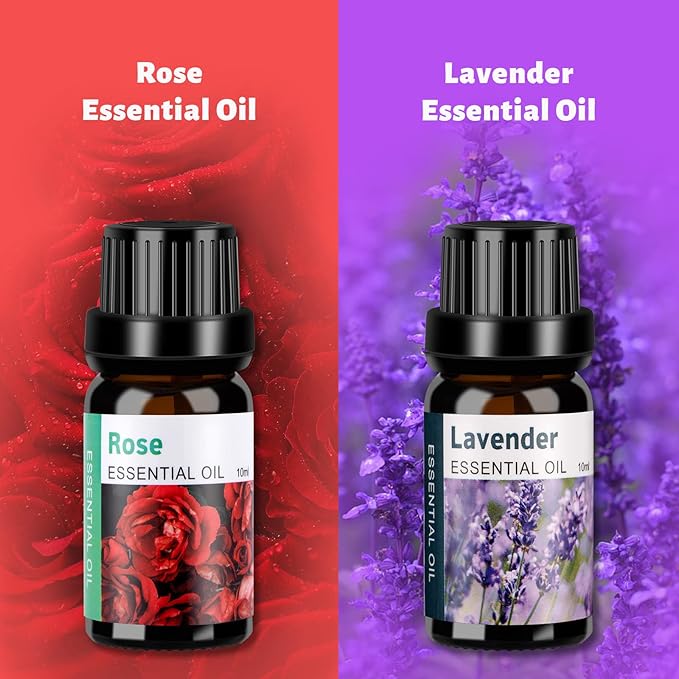 • Diffuser with Remote & Essential Oils Set: The essential oil set includes our most popular black wood grain essential oil diffuser (550ml upgraded version) and top 2 pure essential oils. Lavender,rose essential oils go perfectly with ultrasonic oil diffuser to bring inviting, lively, and aromatic scent.
