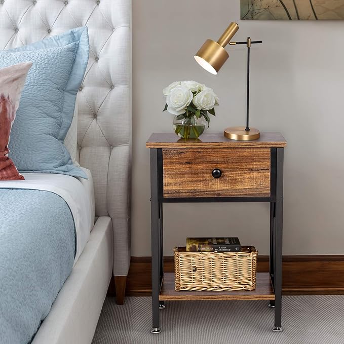 • ★ Classic and Practical: This nightstand with drawer can be used as a side table, living room table, end table, bedside table, couch table. Four adjustable foot pads can protect your floor from scratches.