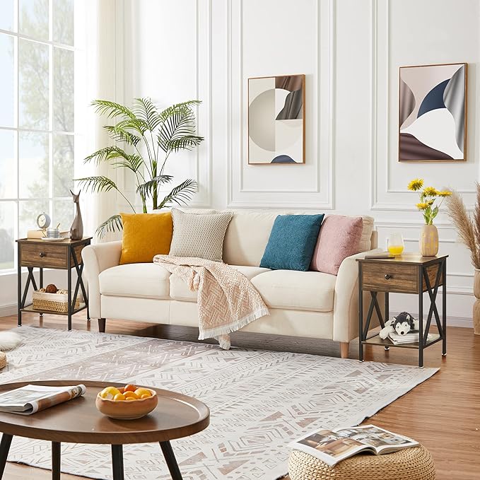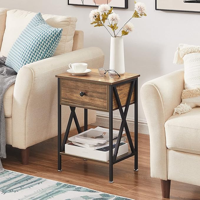 • ★ End Tables with Storage Drawer - VECELO nightstands set of 2 are designed for one drawer and open storage shelf for placing a lamp, Ipad, small radio, books etc. You can put your precious or private items in the drawer. Making your bedroom and living room tidy and organized.