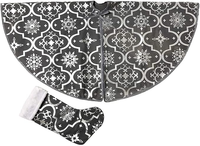 Flash World 36 Inch Large Christmas Tree Skirt Xmas Soft Cover Mat Decor Snowflake Collar Farmhouse Tree Skirt for Holiday Ornaments Party Home Indoor Decorations (Grey, 36INCH)