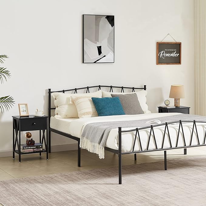 • ★ Decorate Your Space with This Industrial Nightstands Set of 2 - The classic wood tabletop and black steel frames complement each other and create the glossy shine of the vintage look. These modern end tables are perfectly placed next to any bed, sofa or recliner. End Tables Dimensions: 11.8"D x 15.8"W x 21.7"H
