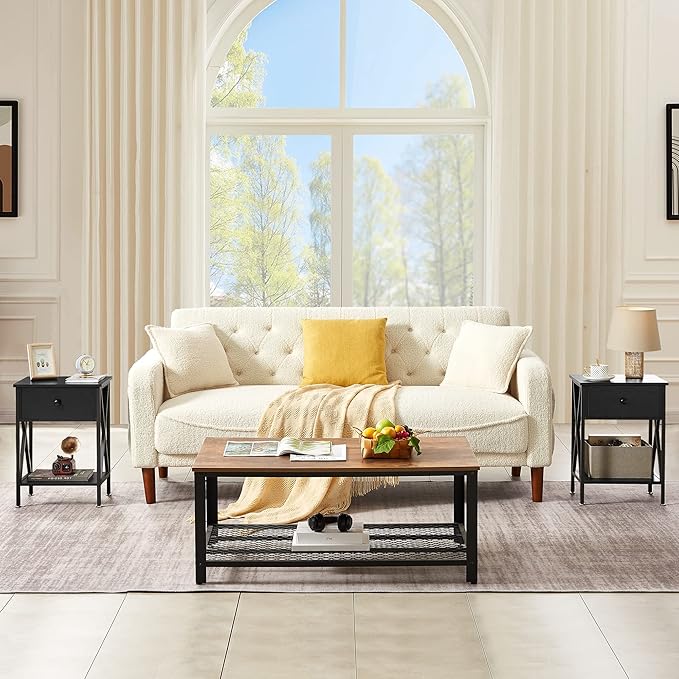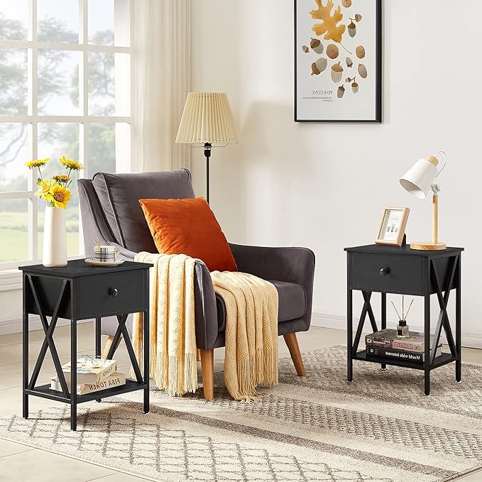 • ★ End Tables with Storage Drawer - VECELO nightstands set of 2 are designed for one drawer and open storage shelf for placing a lamp, Ipad, small radio, books etc. You can put your precious or private items in the drawer. Making your bedroom and living room tidy and organized.