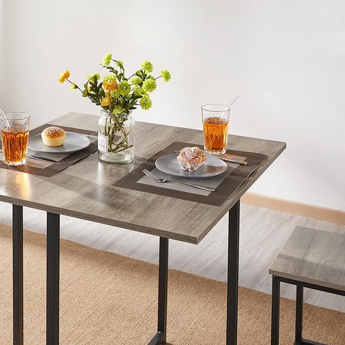 • Modern Industrial Vibe: The small table and chairs showcase clean lines and wooden finish for an industrial flavor, creating a sleek but modern look. Plus, the wooden surface embellished with wood-like grain brings a touch of natural warmth to your dining nook.