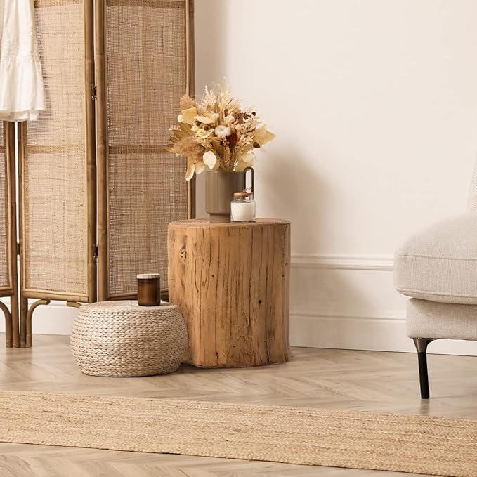• [Exquisite Details] The bottom of the tree stump end table has protective foot pads to ensure the stability of the table and also protect your floor or deck from scratching. It does not need to be assembled, you just need to put your delicate vase or anything else on it and you can start enjoying it directly.