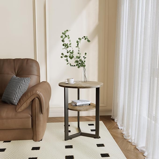 • Versatile Use: Ideal for any room in your home, this round end table with two open storage shelves is a perfect addition to living rooms, bedrooms, reading nooks, offices, or reception areas. Lightweight and portable, it's great for leisure or work. Use it as a sofa side table, bedside table, snack table, laptop desk, lamp stand, or shelf. With its versatile functionality, this round end table allows you to create a thoughtful and chic narrative in your home design.