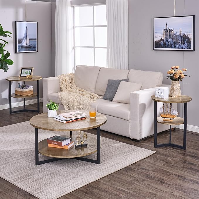 • Size & Color Options: This round end side table series include the large round side table (25.2 x 25.2 x 24 inches), the small round side table (19.3 x 19.3 x 24 inches), the round coffee table (33.5 x 33.5 x 17.8 inches), and the half-moon entryway table. Choose from four colors: natural wood color, natural brown, rustic brown, and rustic black. We recommend purchasing a set for a unified style in your living room.