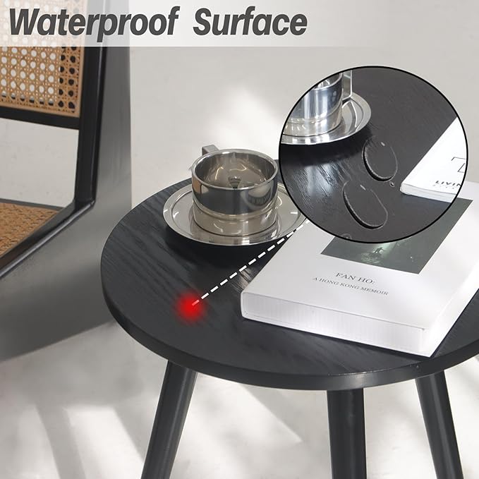 • Premium Material: Black side table is made of MDF and solid wood, has lightweight and space-saving attributes. A round side shape prevents sharp parts from scratching your body. The diameter of the round side table is 16'' diameter 19.5'' high